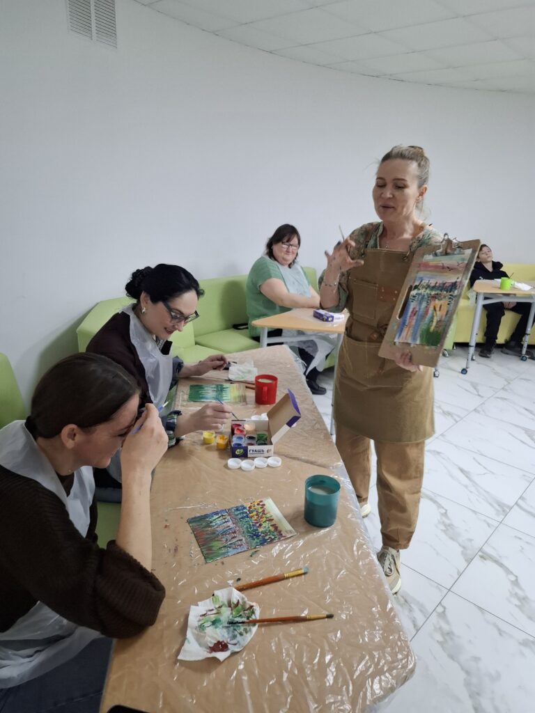 За одно занятие все участники нарисовали две яркие картины и получили массу положительных эмоций. Работа с красками и простыми техниками, которые объяснила ведущая мероприятия Ирина Вебер, помогла успешно справиться даже самым маленьким участникам.