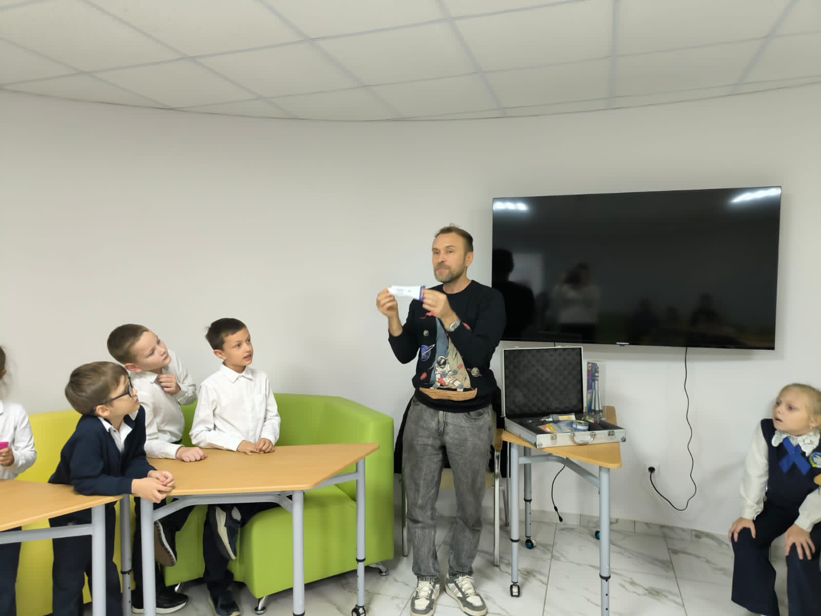 Сегодня прошло мероприятие «Интерактивная космическая игра». Ребята узнали много интересного. Были познавательные викторины о космосе, интерактивные факты о планетах Солнечной системы, позитивные эмоции и новые друзья.